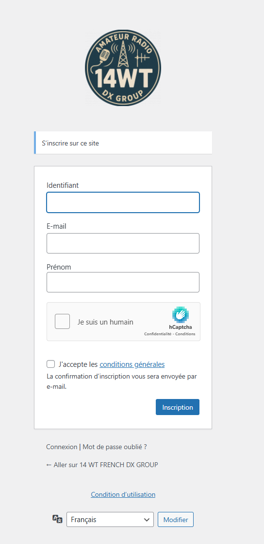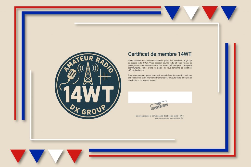 NOTE : Si vous souhaitez obtenir un indicatif 14WT, une fois inscrit et connectĂ©, rendez-vous dans la section "Accueil" puis "Demander un indicatif". Un indicatif 14WTxyz est gĂ©nĂ©rĂ© automatiquement rien que pour vous ! Vous pouvez lâutilisez si ça vous chante. đ