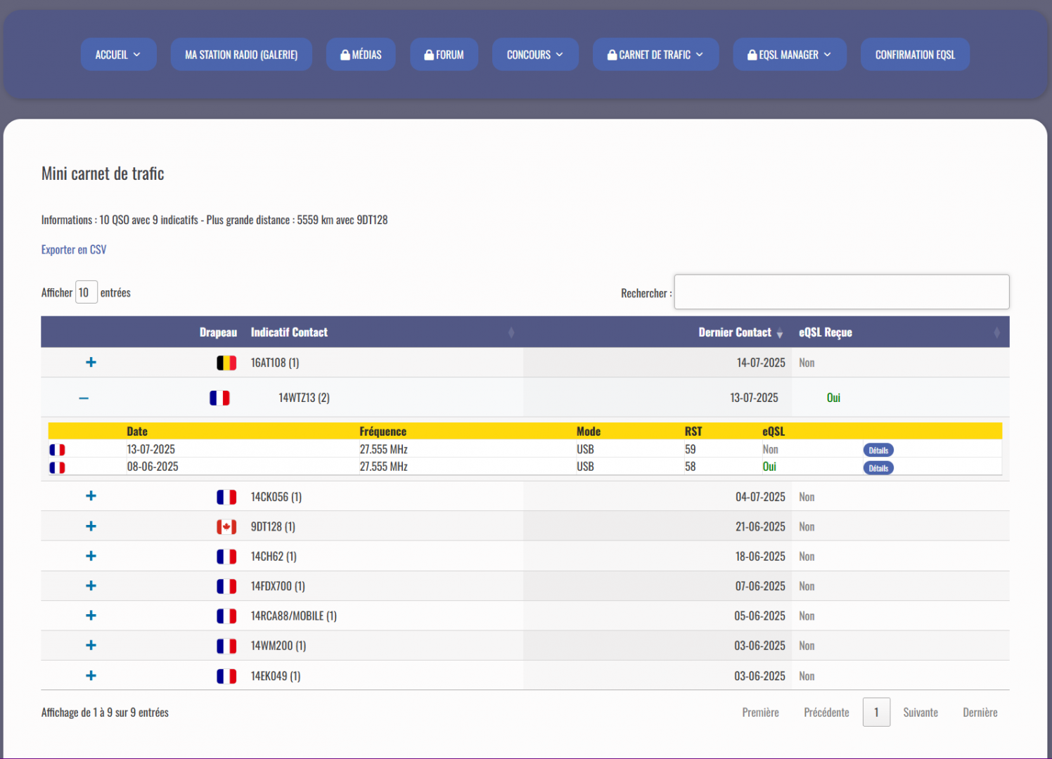 Quelques images de l’interface de gestion des QSO et du carnet de trafic en ligne