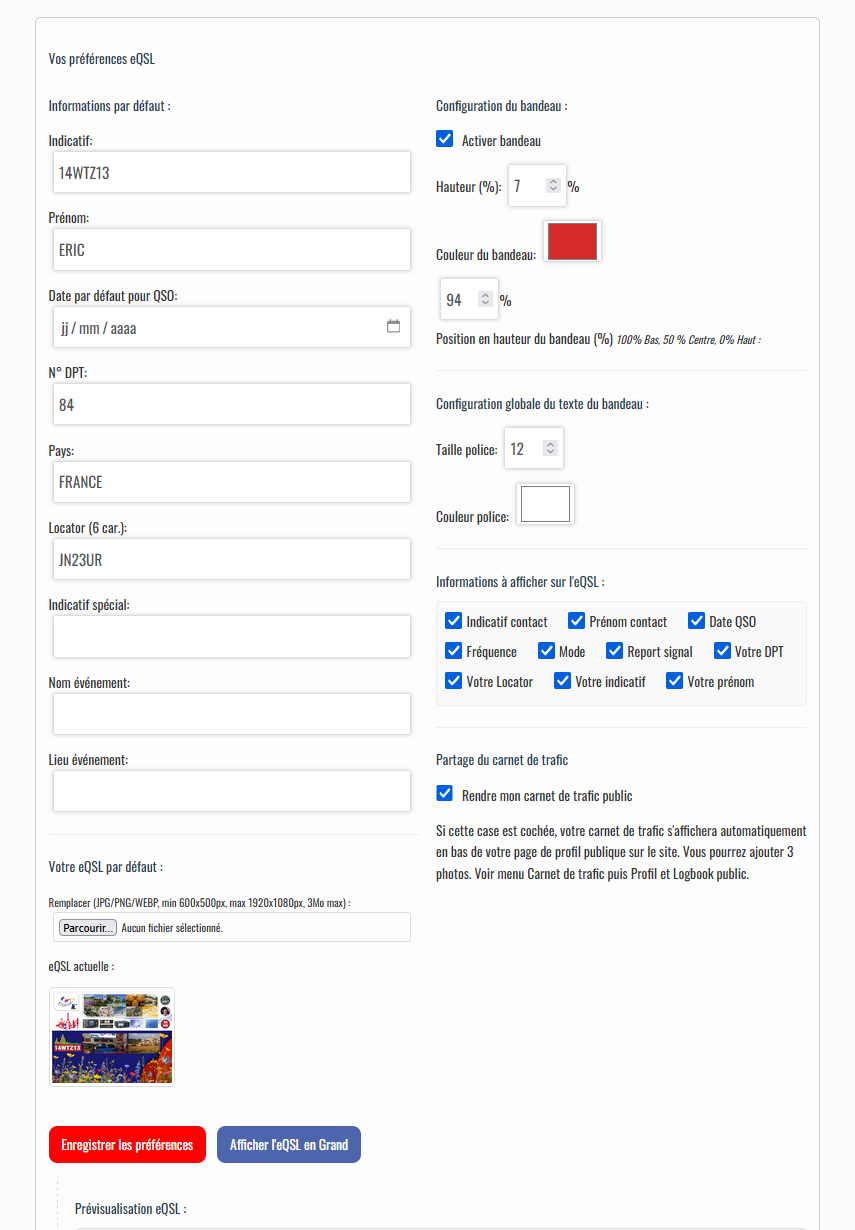- Créez une eQSL à votre image : Personnalisez entiÚrement vos eQSL en choisissant votre propre image et en agençant les données du contact comme vous le souhaitez.
